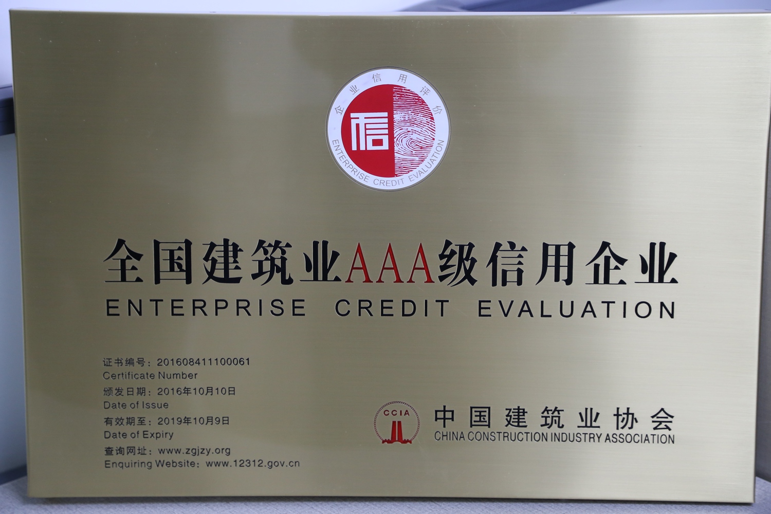 企業(yè)信用等級(jí)是由中國(guó)建筑業(yè)協(xié)會(huì)經(jīng)審核、篩選和評(píng)定而確定的,有效期3年,每年復(fù)審一次。由于公司一直本著誠(chéng)信、服務(wù)、質(zhì)量為上的原則,獲得了中國(guó)建筑業(yè)協(xié)會(huì)及社會(huì)大眾的認(rèn)可,2016年10月公司再度榮獲“AAA級(jí)信用企業(yè)”的榮譽(yù)稱(chēng)號(hào)。這個(gè)全國(guó)建筑行業(yè)都為數(shù)不多的榮譽(yù)是對(duì)我們企業(yè)的肯定及嘉獎(jiǎng),讓我們樹(shù)起信譽(yù)旗幟,再創(chuàng)輝煌,攜手走得更好、更遠(yuǎn)。