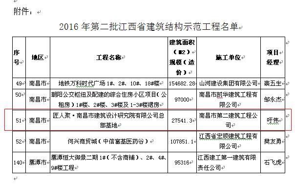 公司匠人聚?南昌市建筑設(shè)計研究院有限公司總部基地工地榮獲2016年第二批江西省建筑結(jié)構(gòu)示范工程稱號