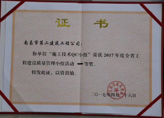 技術質(zhì)檢部貫徹公司質(zhì)量標準化管理精神,以切實提高工程質(zhì)量為目標,積極開展全面質(zhì)量管理技術攻關活動,所撰寫的《提高GC泡沫水泥保溫板外墻外保溫施工質(zhì)量 》QC課題成果,榮獲“2017年度全省工程建設優(yōu)秀質(zhì)量管理小組活動一等獎”。