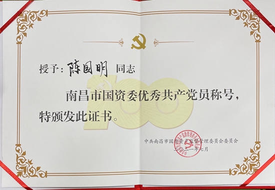 在隆重紀(jì)念中國共產(chǎn)黨成立100周年之際,南昌市國資委和南昌旅游集團(tuán)于近日對(duì)一批來自各條工作戰(zhàn)線上的優(yōu)秀黨員和優(yōu)秀黨務(wù)工作者及先進(jìn)基層黨組織進(jìn)行了表彰,獎(jiǎng)勵(lì)他(她)們?cè)诟髯缘墓ぷ鲘徫簧?/font>履職盡責(zé)創(chuàng)先進(jìn)、立足崗位爭優(yōu)秀,在推動(dòng)企業(yè)高質(zhì)量發(fā)展中充分發(fā)揮戰(zhàn)斗堡壘和先鋒模范作用。其中,公司陳國明同志榮獲市國資委“優(yōu)秀共產(chǎn)黨員”稱號(hào),公司黨委被評(píng)為南旅集團(tuán)“先進(jìn)基層黨組織”,黨員職工胡穎明、徐小蘭、王昕、王貞同志獲南旅集團(tuán)“優(yōu)秀共產(chǎn)黨員”稱號(hào)。
